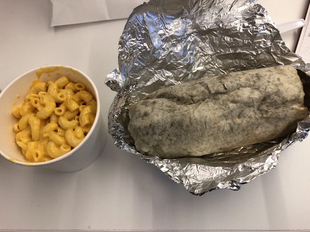 Rice, black beans, cheese, salsa, guacamole and lettuce with spicy cheese sauce. Served with 1 side dish.